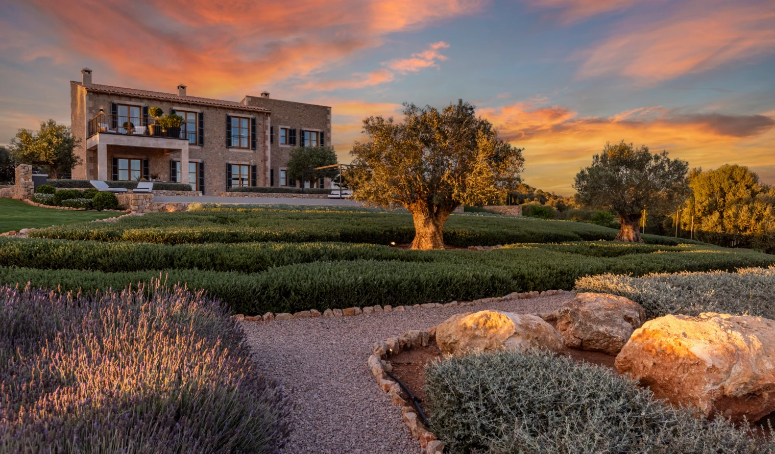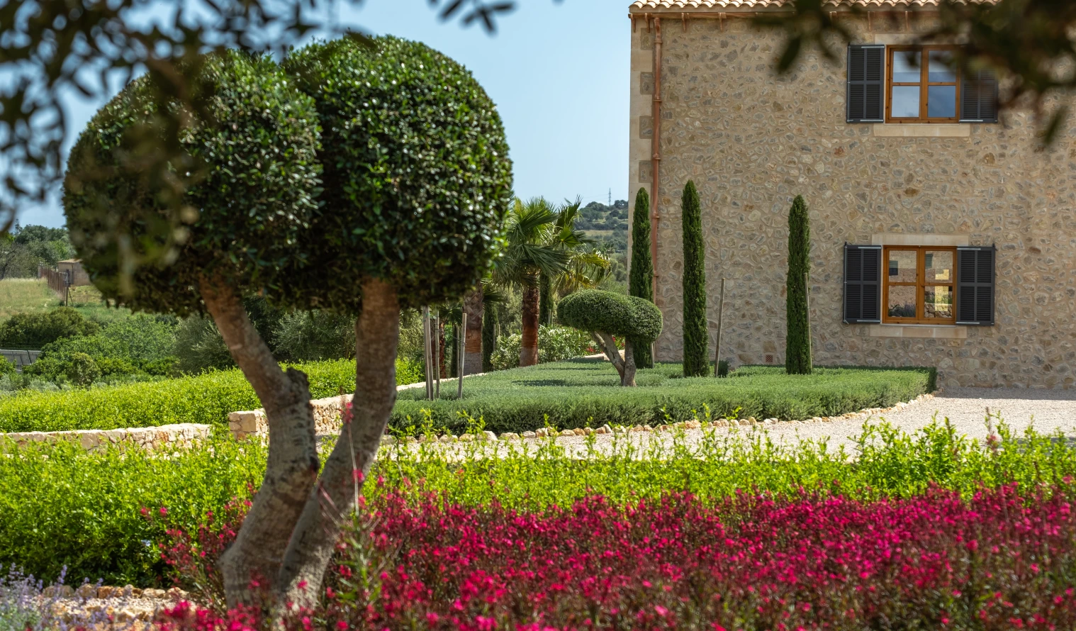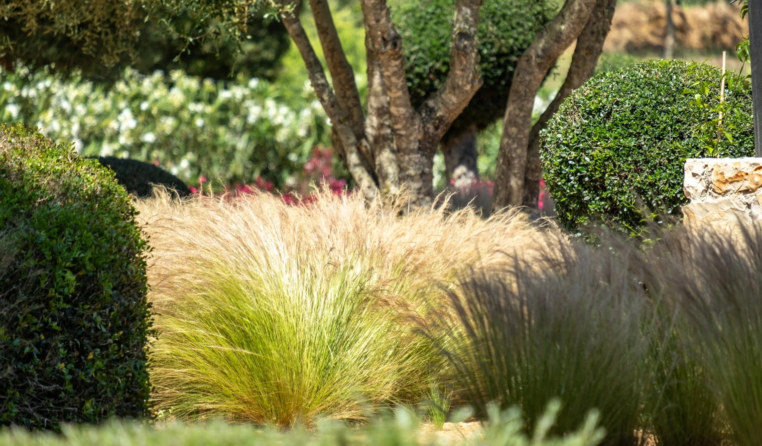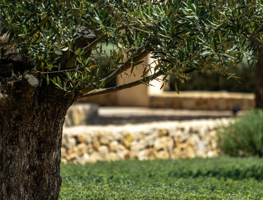 Los antiguos olivos de la finca fueron cuidadosamente trasplantados y reposicionados en el jardín.